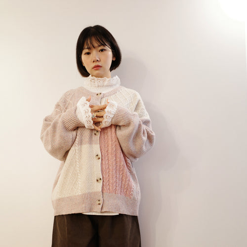 Jamm select | Patchwork Cardigan (Pink/Beige/Grey)