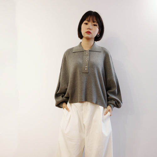 Jamm select | Boxy Cutting Cropped Polo Top(White/Grey/Navy/Brown)