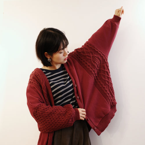 Jamm select | Patchwork V neck Cardigan (White/Wine/Navy)