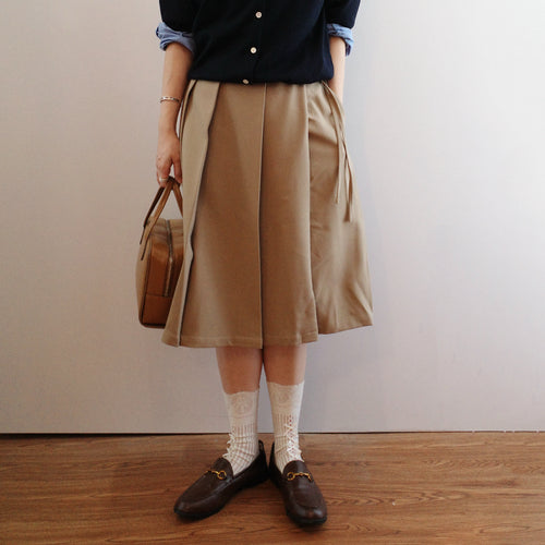 JAMM Select | Wrap Pleated Skirt(Navy/Grey/Beige)